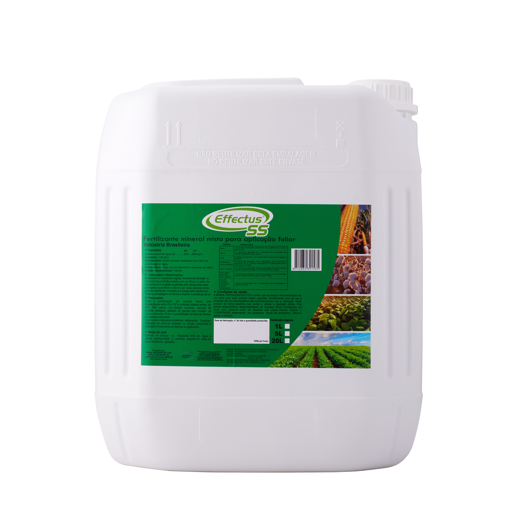 Effectus® SS é um fertilizante mineral foliar de alta solubilidade (99%), desenvolvido para rápida absorção pelos tecidos das plantas. Sua formulação eficiente garante o suprimento ideal de enxofre, de acordo com as necessidades nutricionais de cada fase do desenvolvimento das culturas.
